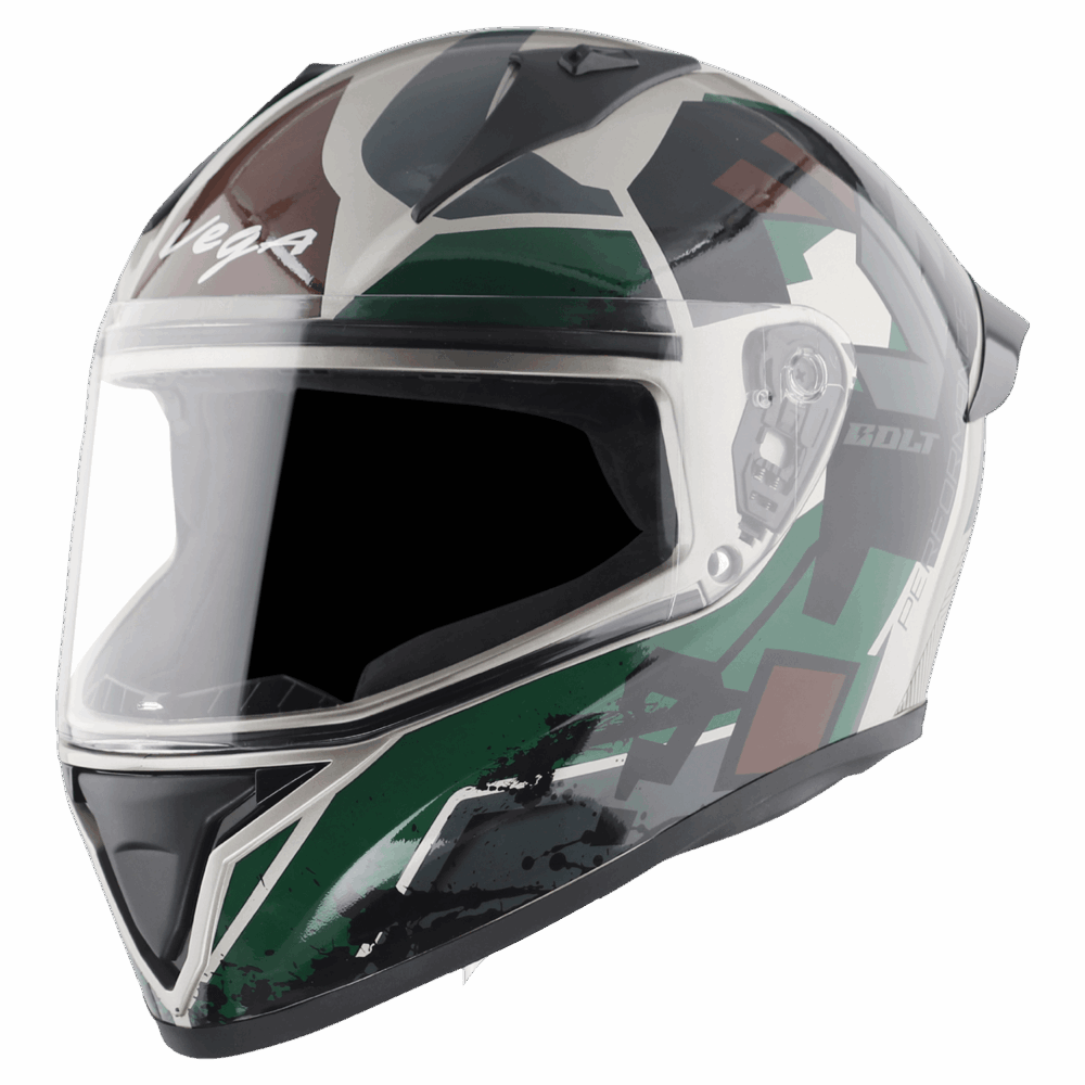 Designed with a rugged camouflage pattern, this VEGA Bolt helmet embodies the spirit of courage. The blend of earthy tones reflects the strength and discipline of military forces, making it a perfect tribute to those who serve. This helmet lets riders take on the road with the same confidence as soldiers on the field.
